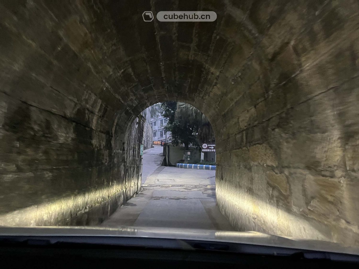 在即将抵达跃进站前,我们驾驶的小型轿车通过了一处极窄的居民楼门洞,在此作出特别提醒