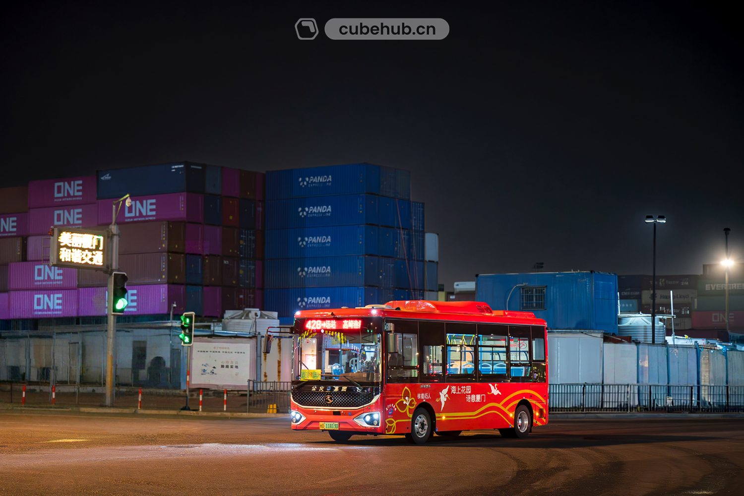 厦门的“海上花园”标签,通常配的是环岛路椰风或鼓浪屿浪声,可这台小公共偏不走寻常路——车身印着“海上花园 诗意厦门”的文艺字样,却天天扎进港区那堆“钢铁积木”里,活像走错重金属现场的民谣歌手。